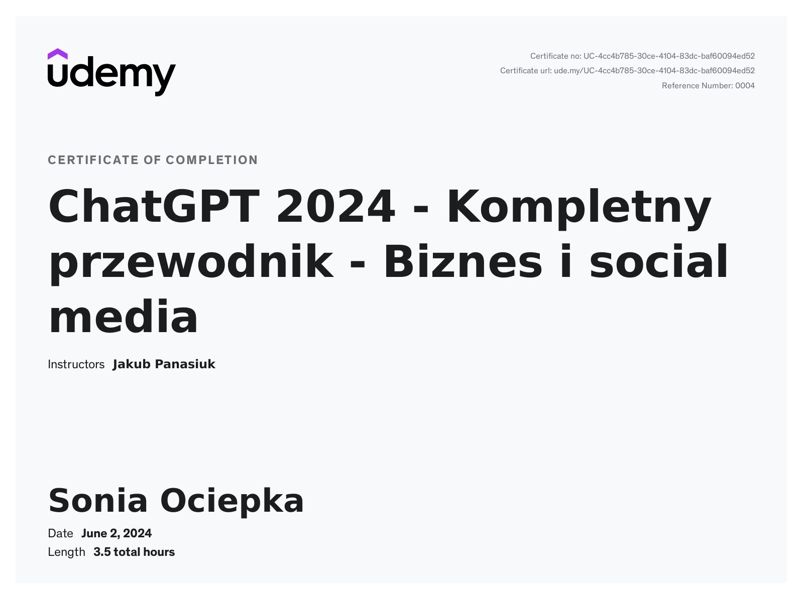 Te certyfikaty to dowód zaangażowania i pasji do tego, co robię.